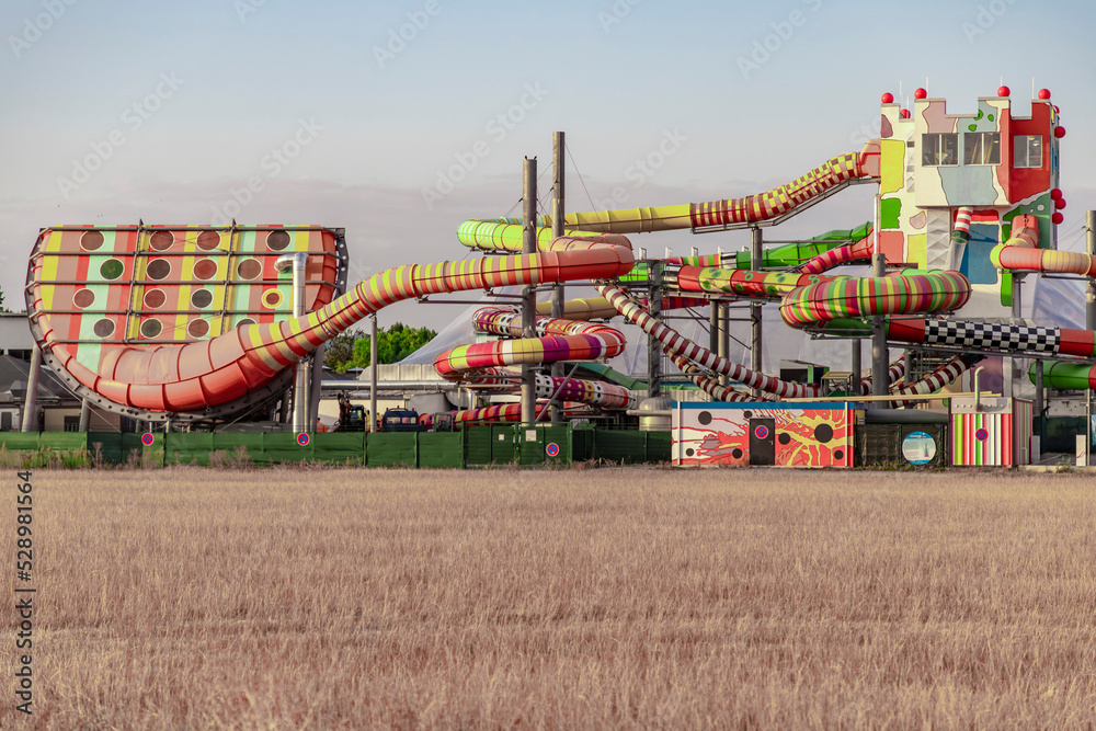 Happy people posing near light wall and illustration of speech bubbles with word Hello written in different languages