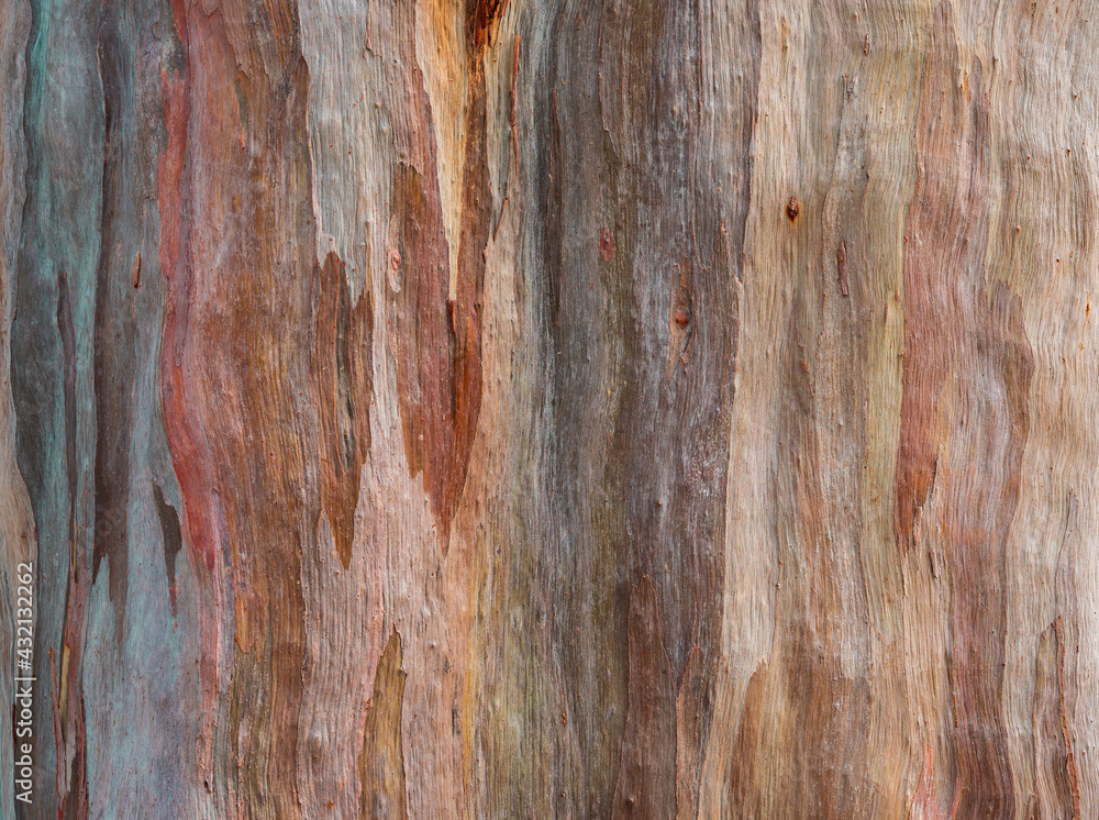 Abstract texture background of colorful of eucalyptus deglupta bark (Rainbow Eucalyptus tree).