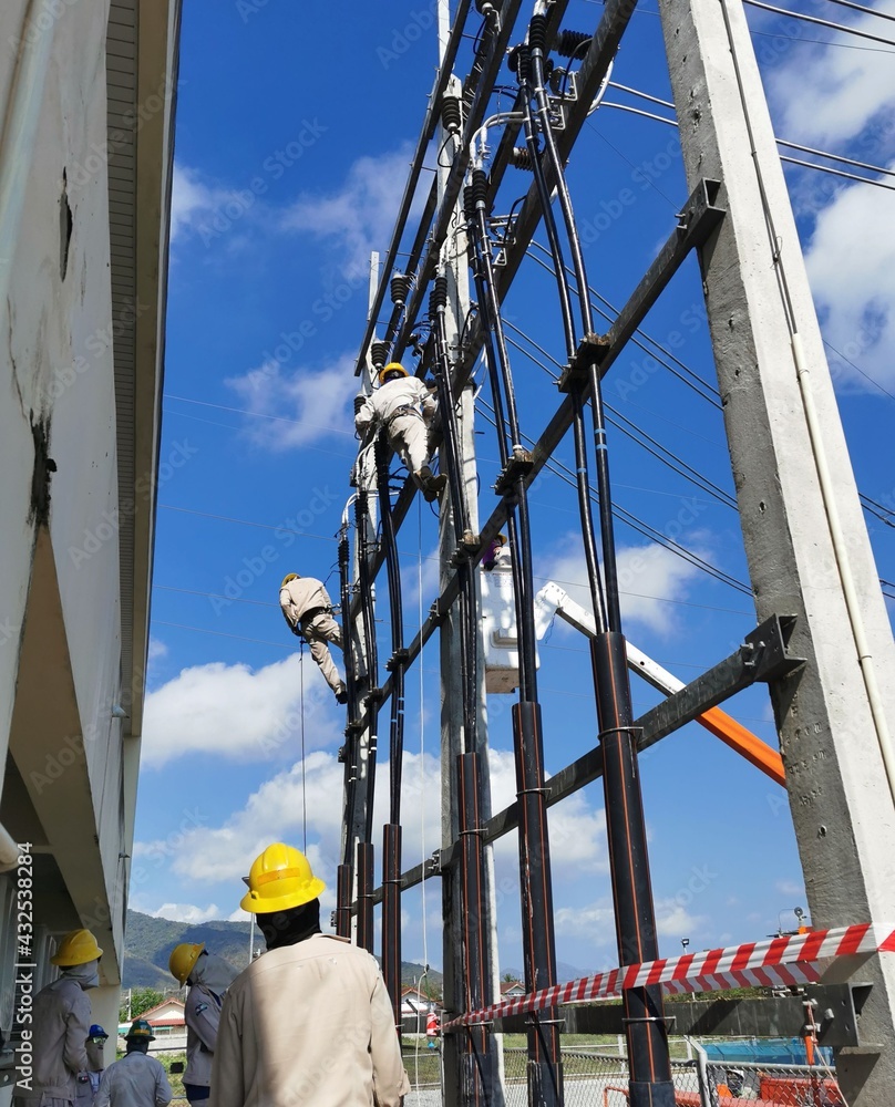 Electrician work maintenance and Repair underground cable in high voltage substation