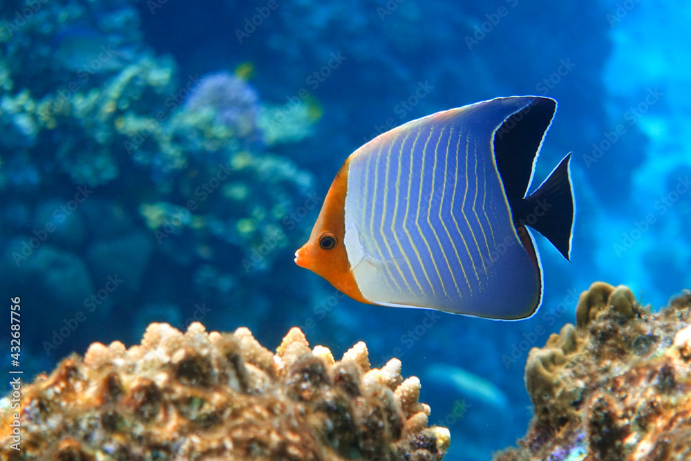 Coral fish - Hooded butterflyfish or Orangeface butterflyfish (Chaetodon larvatus) in Red Sea