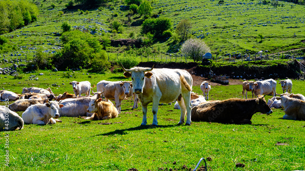 grazing cows in the green. Cilento National Park, Campania, Italy.