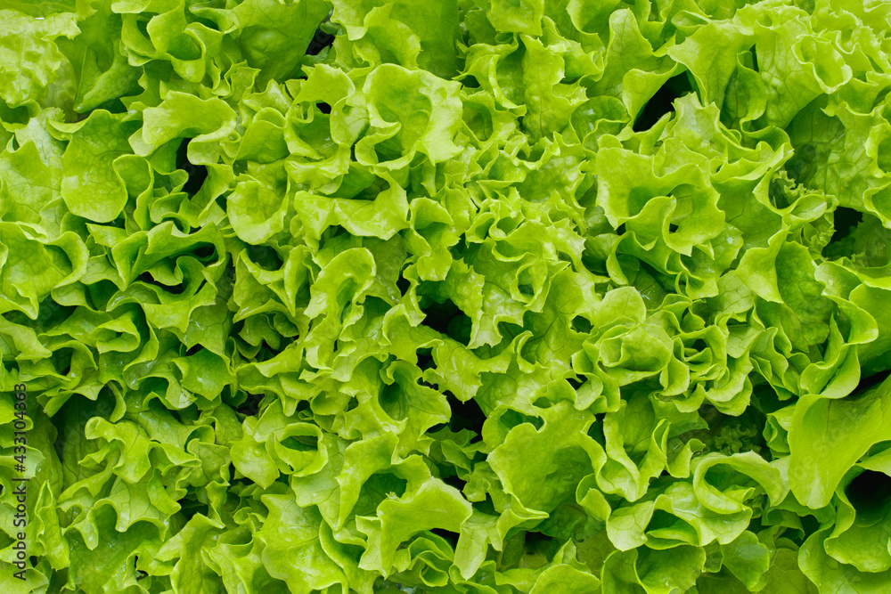 Close-up green lettuce leaves texture background