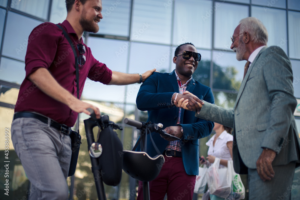 Small Group of business men talking on the street.