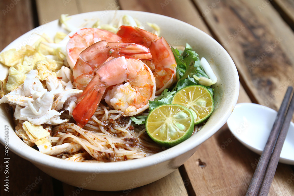 Bowl of Sarawak Laksa, a polular local dish in Sarawak, Malaysia