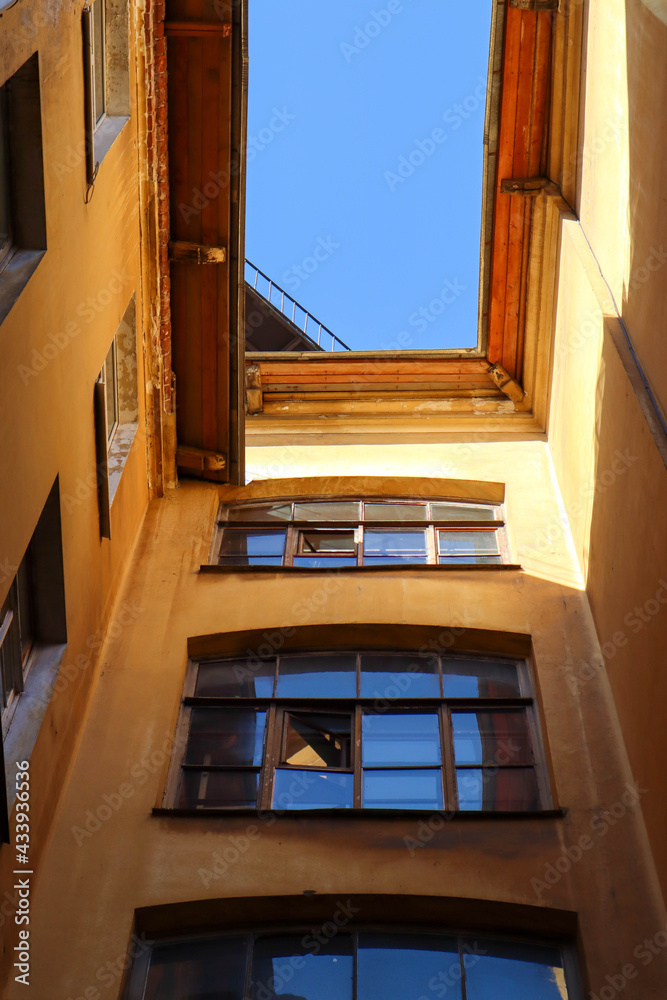 walking in the downtown of Saint Petersburg - old dirty well yards