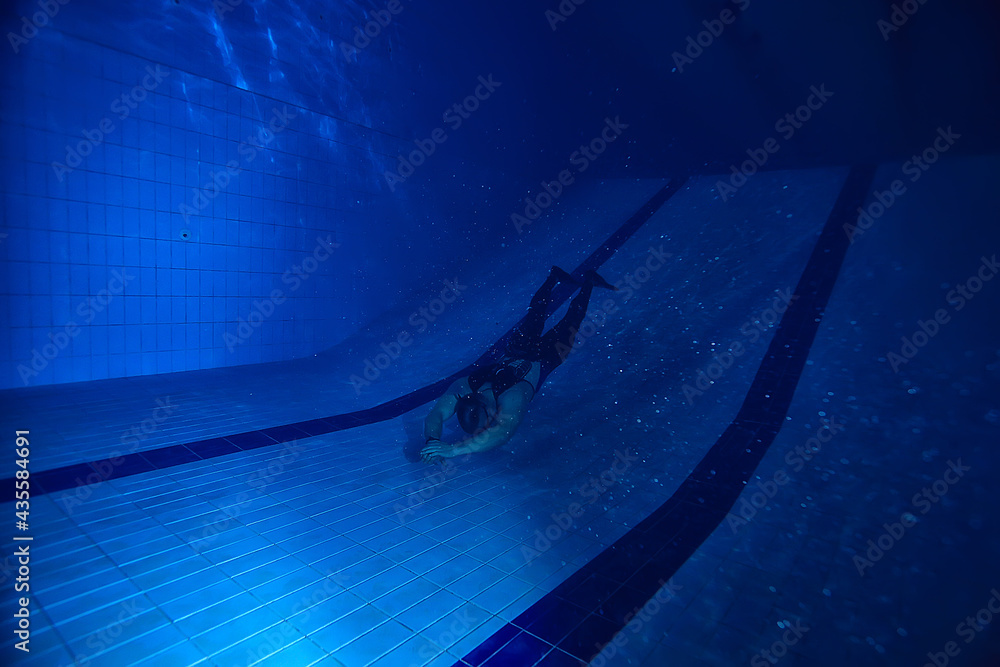 freediving training in the pool, in fins underwater view