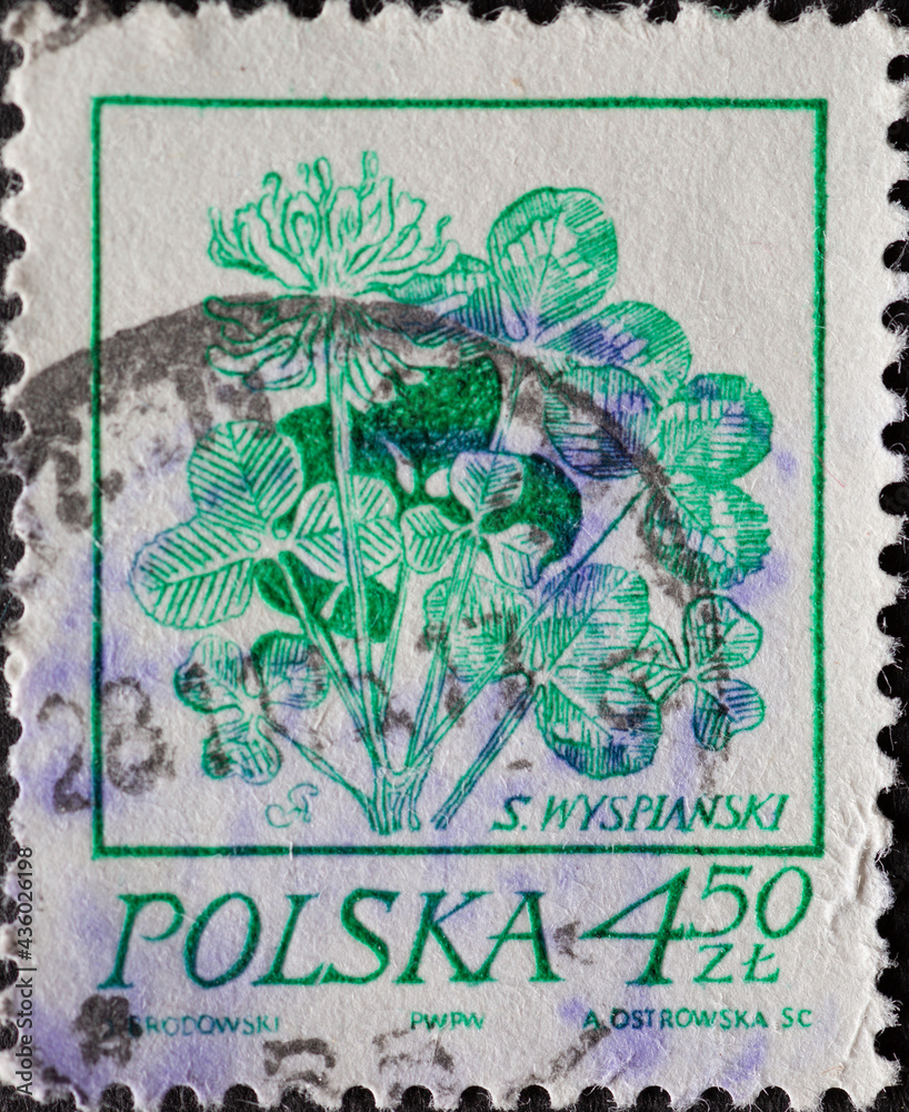 POLAND-CIRCA 1974 : A post stamp printed in Poland showing Drawing of a flower: trifolium