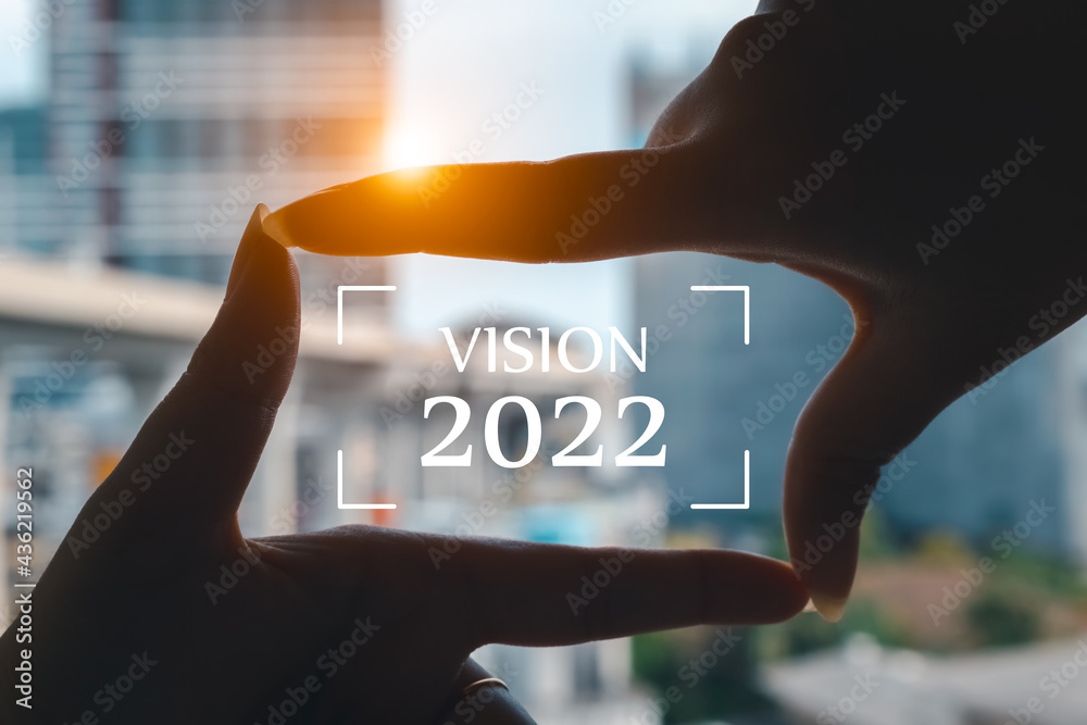 New year 2022 starts the concept of businessmen framing and vision 2022 by hand, the concept of planning and challenges or career paths, business strategies opportunities and change.