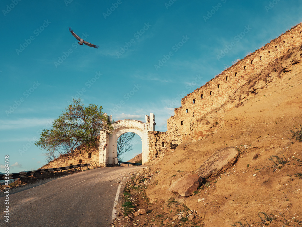 Shamil gate Upper Gunib in Dagestan. Gunib fortress is a historical monument.
