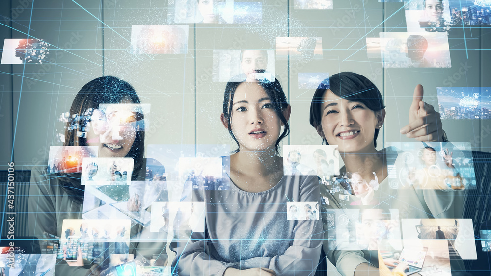 ホログラム画面を見る人々 映像コンテンツ 動画配信サービス