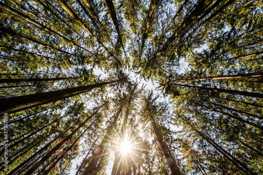 Zauberwald Sonne Bäume Baumkronen Forest Trees Grün Natur Sonnenstrahlen Peace
