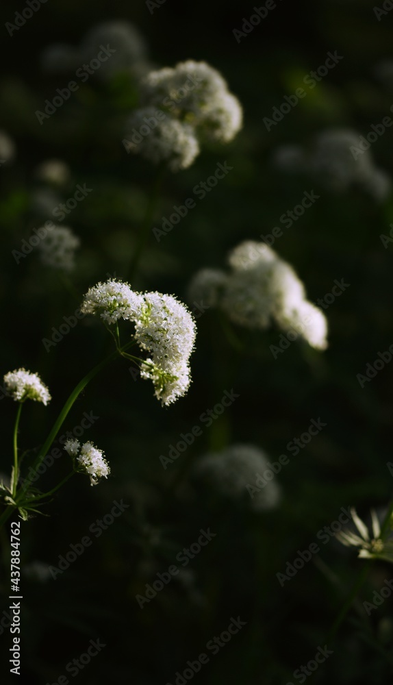 Valerian plants blooming in shady place.
