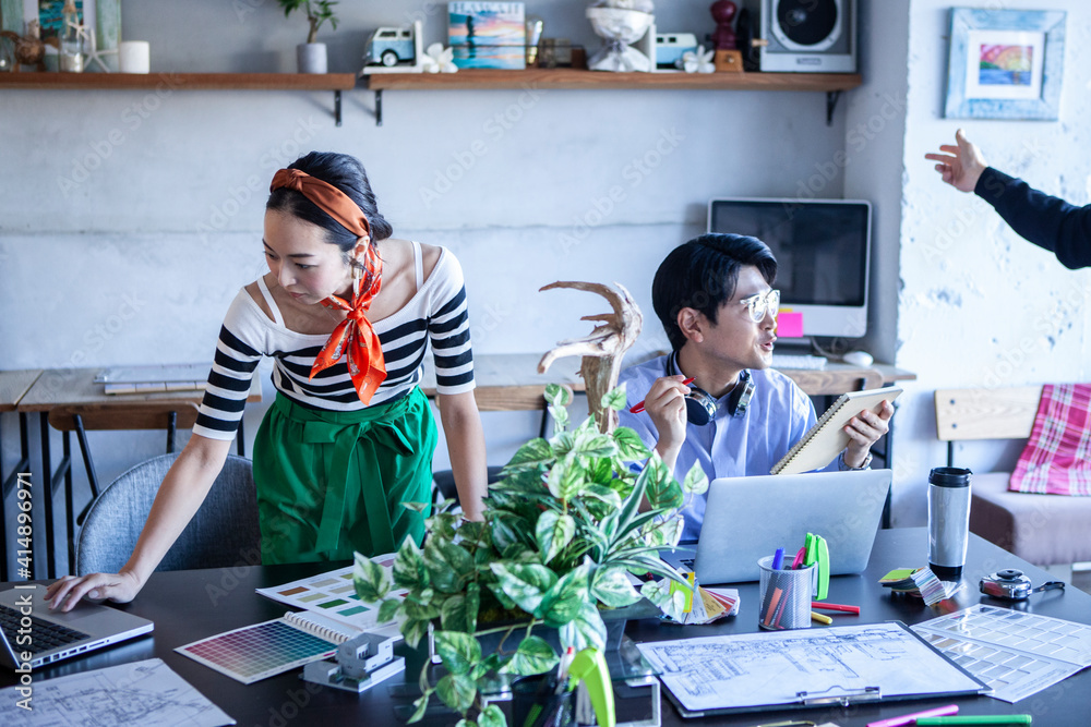 Online auction bidding concept with a man in a black suit showing a digital hammer on the palm of his hand.