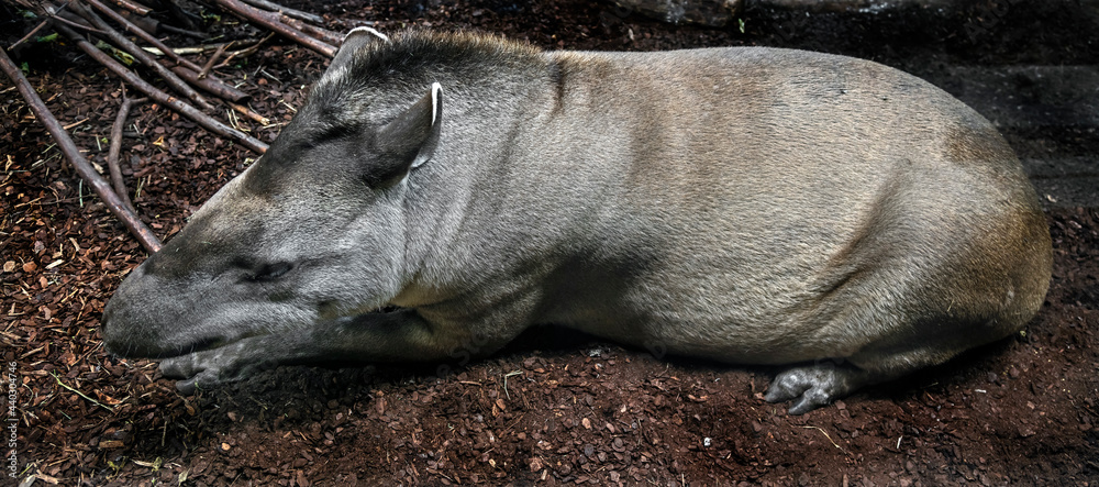 South american tapir on the ground. Latin name - Tapirus terrestris