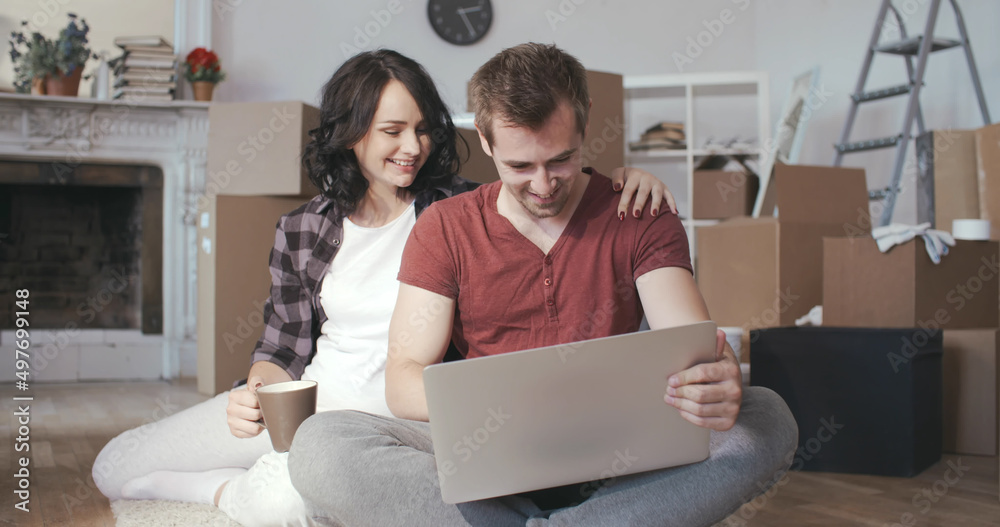 Fitness coach gives some motivation to woman doing push-ups with handshake