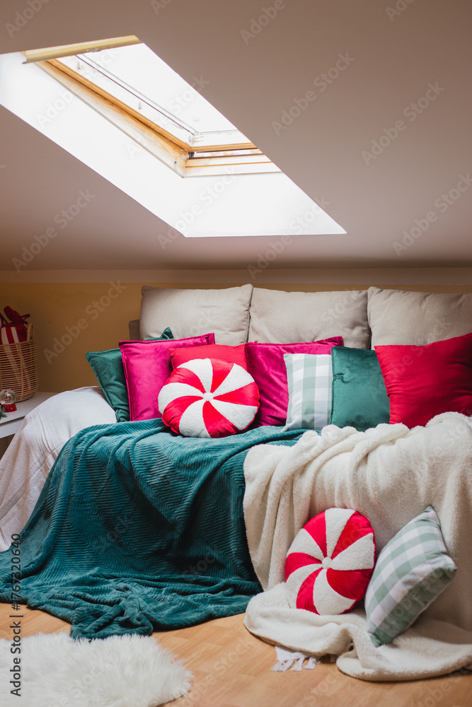 Autumn wreath from dry colored leaves, cones and black berries on beige background, copy space, seasonal flyer concept. Bright color fall greeting card, Thanksgiving day invitation