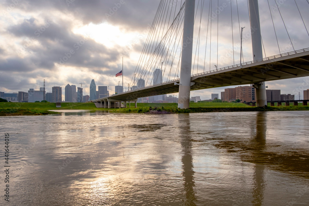 Dallas skyline with flooded Trinity River