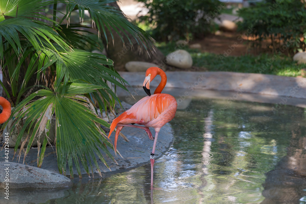 Beautiful flamingos at the zoo
