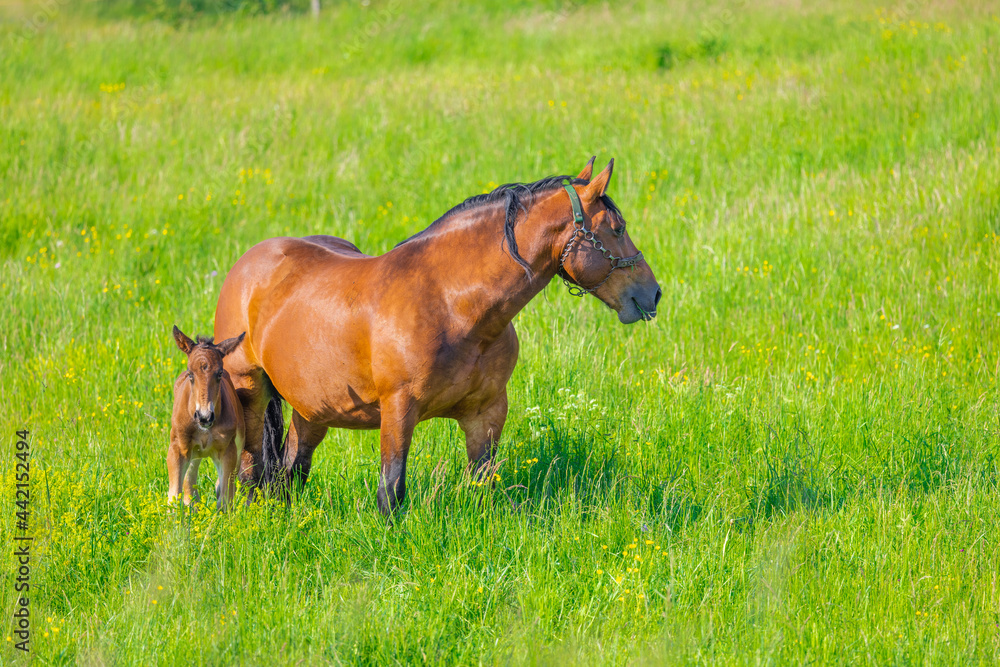 Carefree life on the farm. Rural country with spring meadows and farm aninmals.