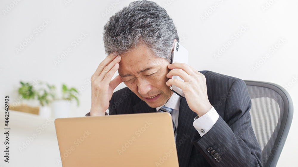 ミドル男性・ビジネス・パソコン・スマホ・電話