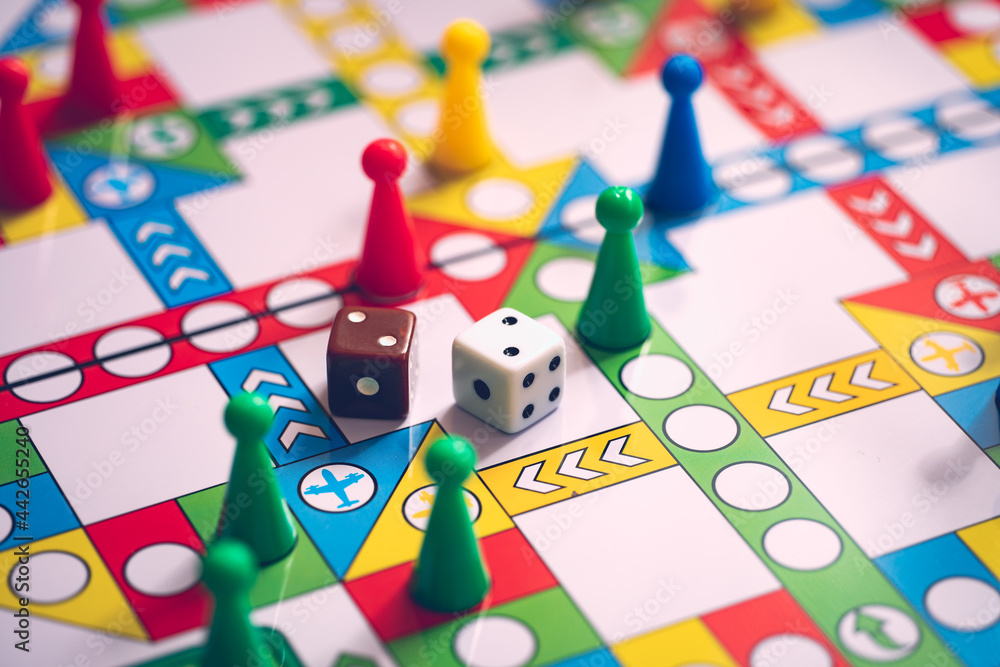 Close up dice on board game using for business strategy concept