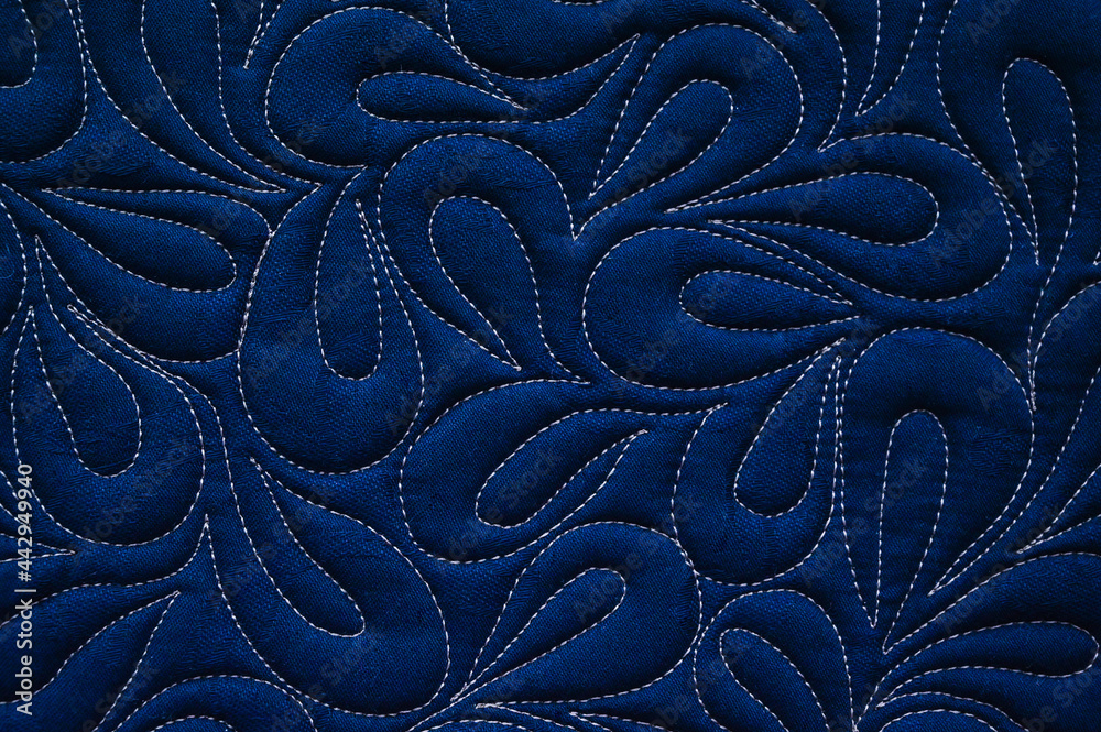 Close up texture of quilting by free-motion machine technique. on dark blue clothes Background