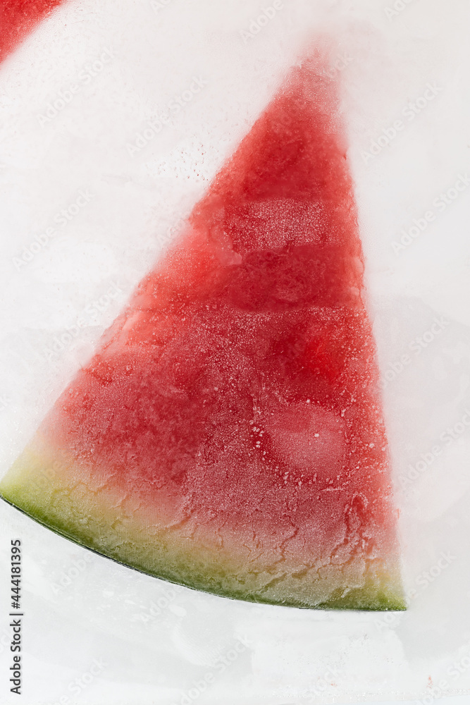 The delicious watermelon was frozen in ice