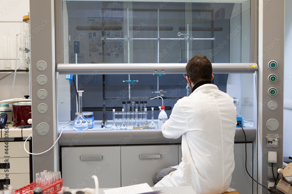 Doctor or scientist researcher working in laboratory holding a syringe with liquid virus vaccines, diseases, medical care, science, Concept fight against virus covid-19 coronavirus