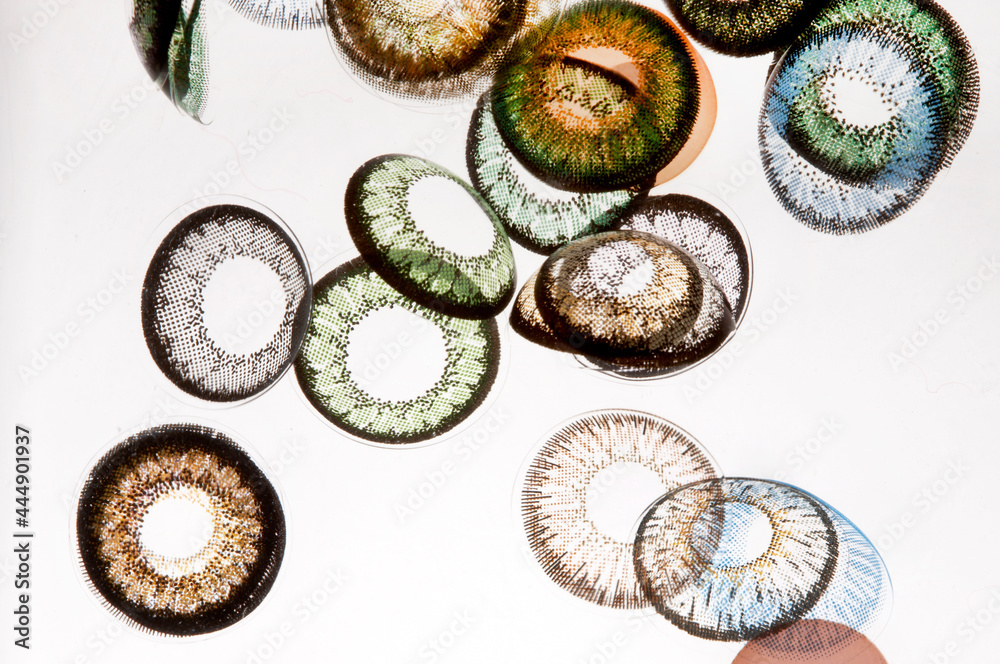 하얀 배경 위의 많은 일회용 콘텍트렌즈
