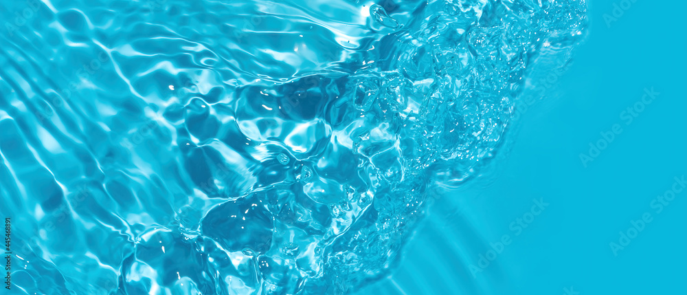Transparent blue colored clear water surface texture with ripples. Abstract nature background Water waves with copy space
