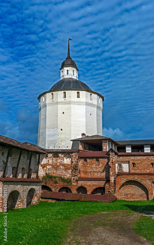 Monastery wall and Belozerskaya tower. Kirillo-Belozersky monastery, city of Kirillov, Russia