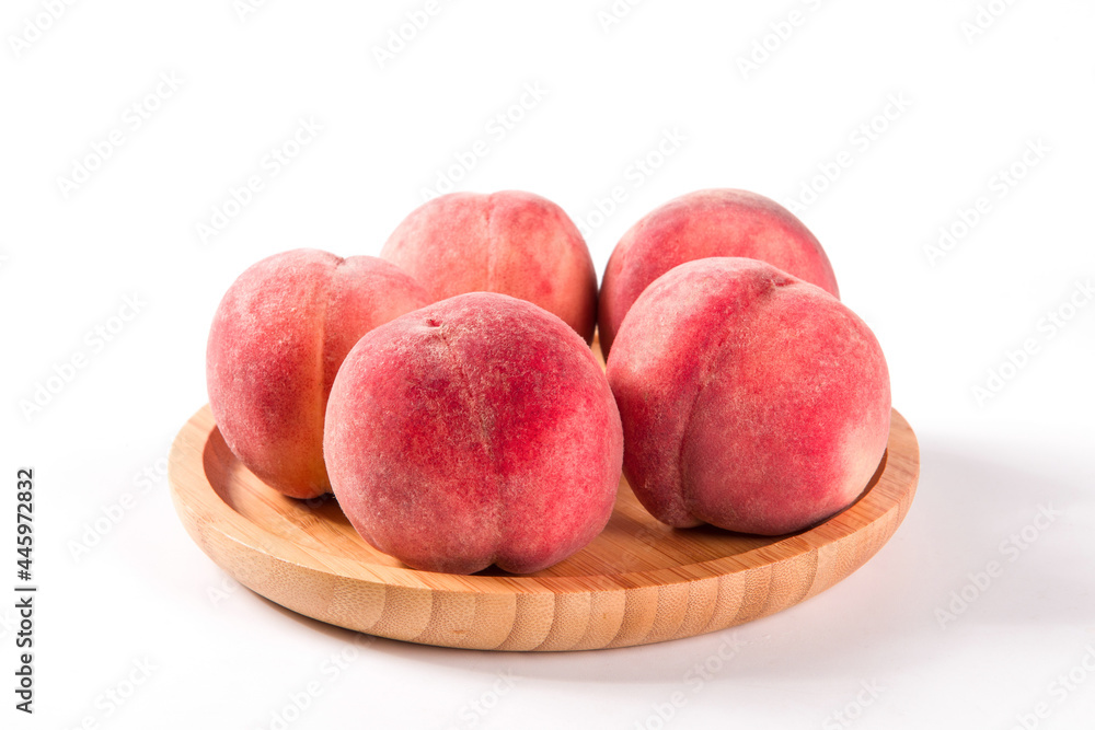 Ripe peach fruit close-up isolated on white background