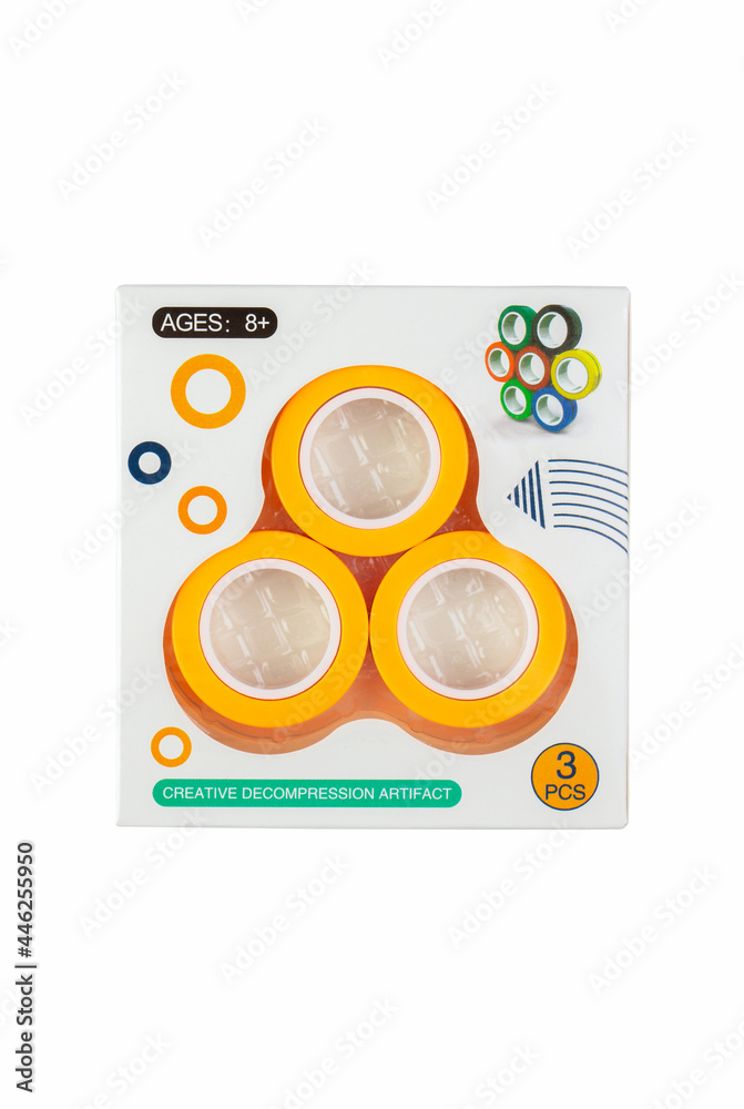 Moscow, Russia - 10/07/2020: Spinner in box magnetic rings toy for children 8 +
