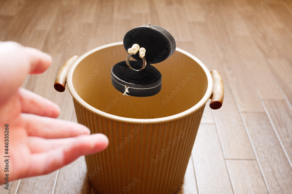 不要な指輪をケースごとゴミ箱に投げ捨てる