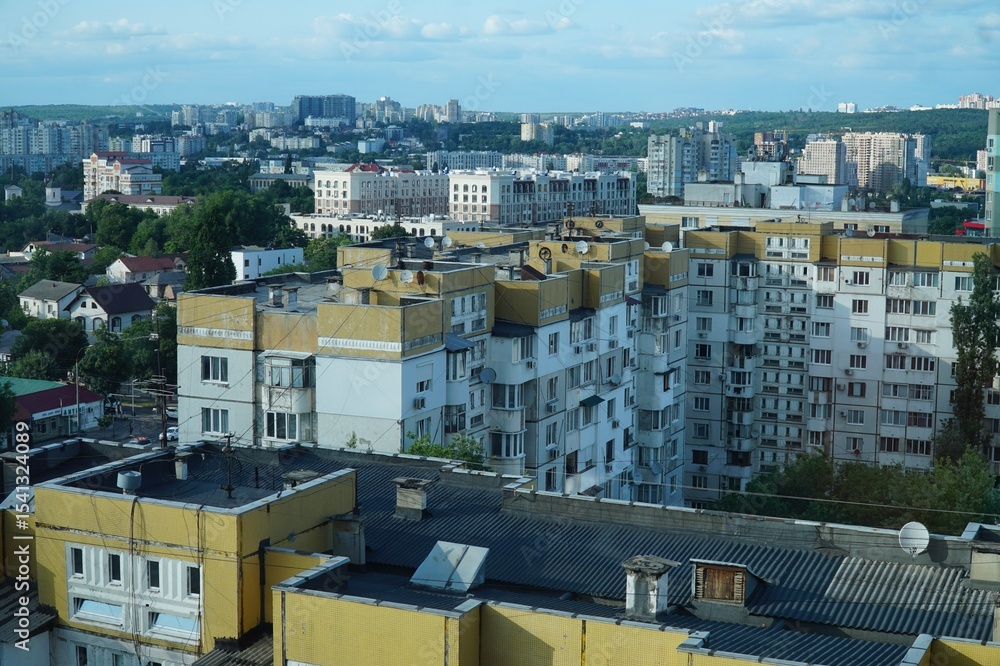 bird view of remote online working digital nomad woman in bikini with long black hair and laptop on a white table standing in a sunny blue water pool on Workation