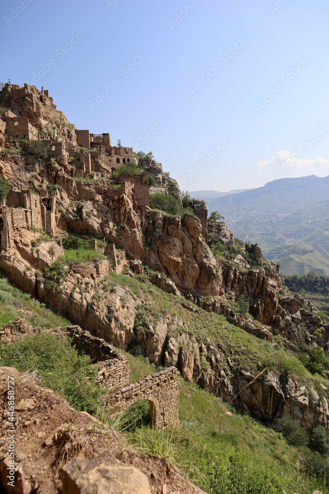 Rocks and ruins - picturesque landscape of Gamsutl, Dagestan