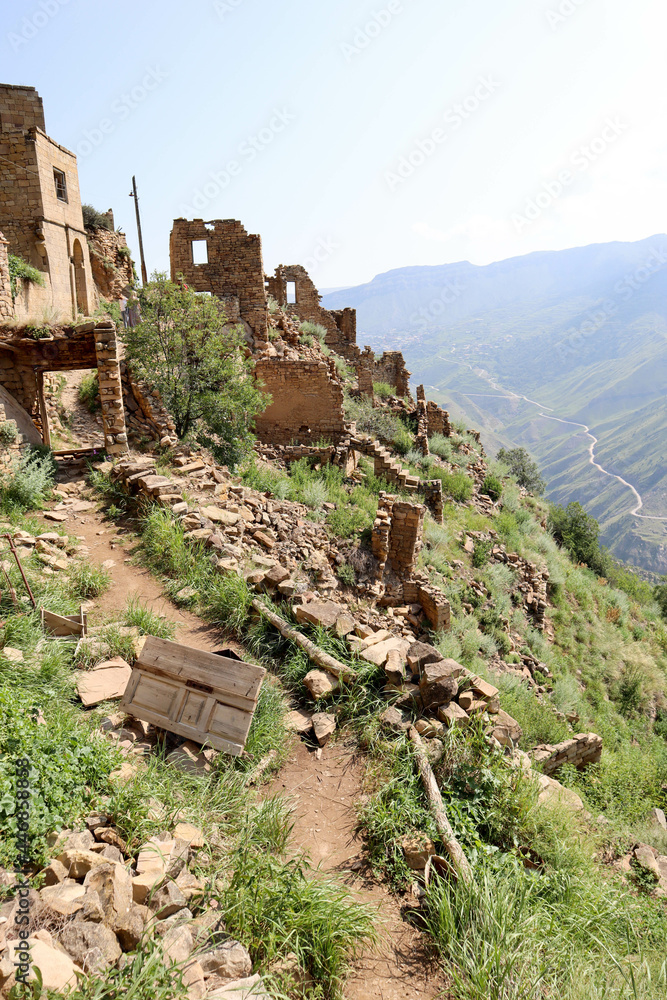 Rocks and ruins - picturesque landscape of Gamsutl, Dagestan