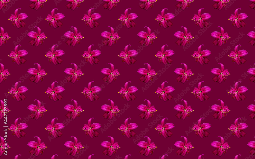 Beautiful flowers lilies. Seamless pattern of Lily flower bloom. Floral natural background.
