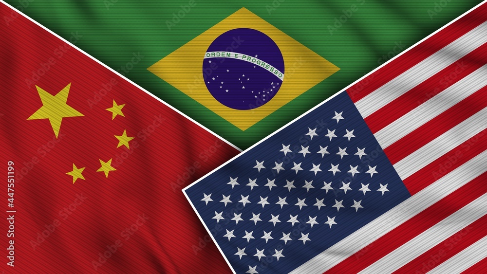 Brazil United States of America China Flags Together Fabric Texture Effect Illustration