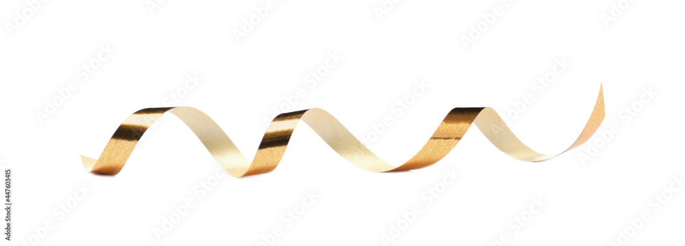 Shiny serpentine streamer isolated on white. Festive decor