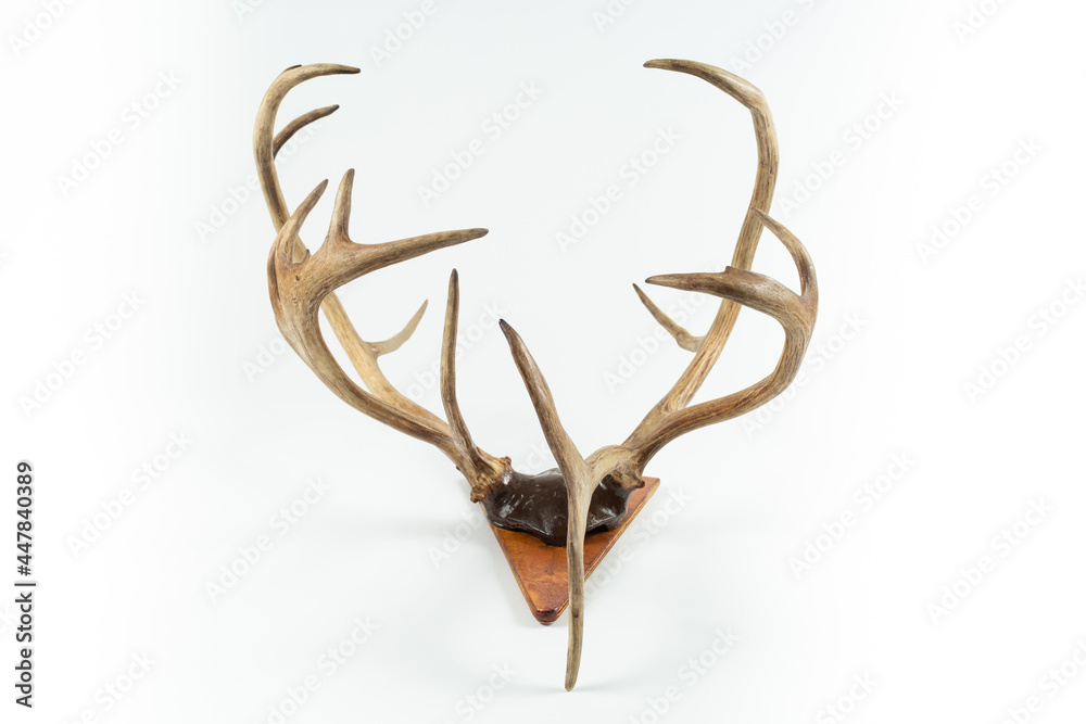 An angled view of a whitetail deer antler isolated on white