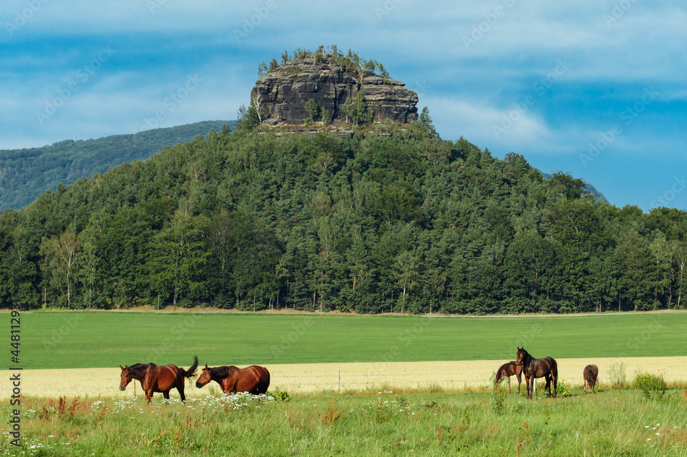 Zirkelstein und Pferde in der Sächsischen Schweiz