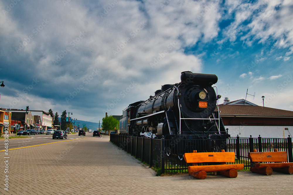 The historic Canadian National locomotive placed beside the Jasper station. Jasper AB Canada