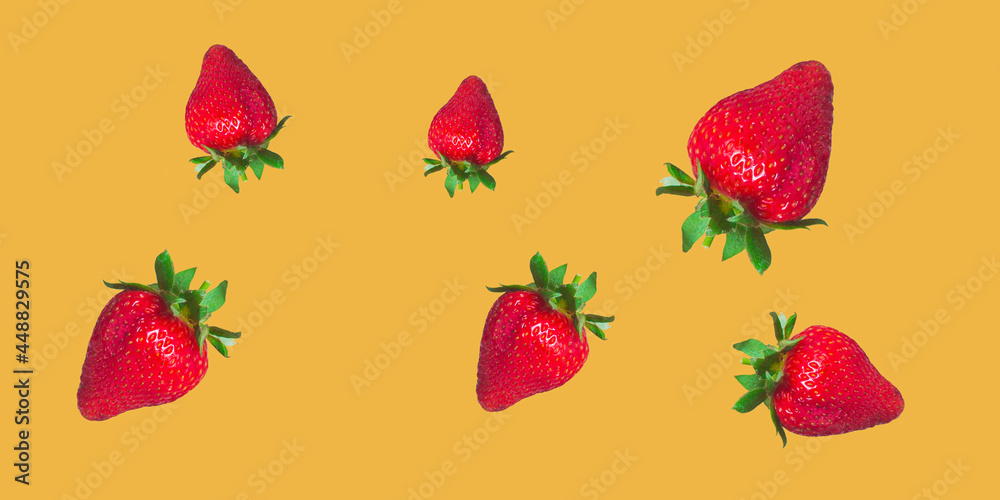 Seamless background with fresh strawberries. Juicy strawberries isolated on a yellow background.