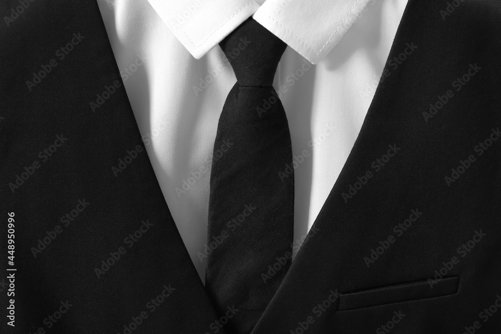 Stylish school uniform with necktie, closeup