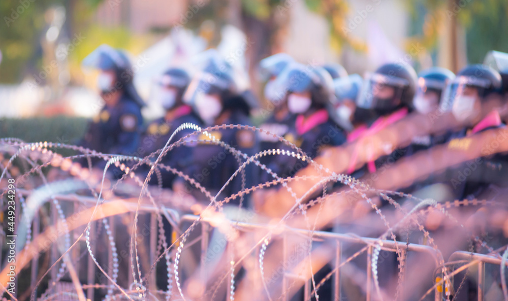 Blurred image of, crowd of control officers, demonstrations, people's protests against the ruling authority.