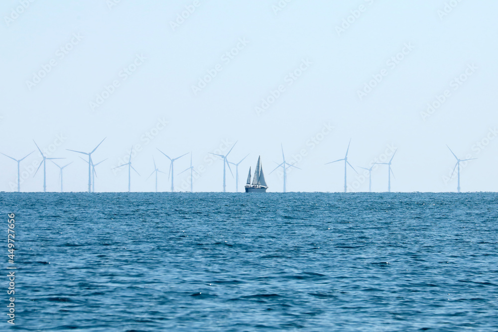 2021 08 04: A sailing boat passes near the Rampion offshore wind farm