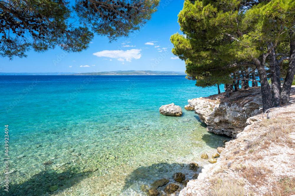 amazing azure adriatic sea in Baska Voda on Makarska riviera in Dalmatia, Croatia