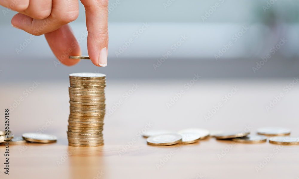 stacking money coins and a house model.save and investment for buy house concept .for the future.save money concept.
