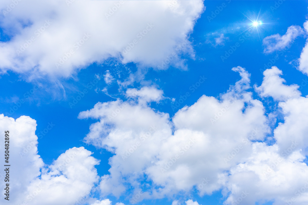 太陽の日差しと爽やかな青空と雲の背景素材_b_18